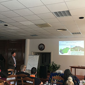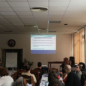 The participants is listening the presentation of water management expert, Iván Balla.