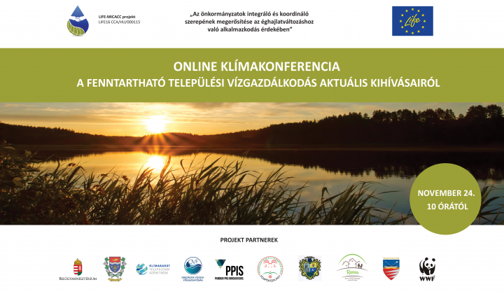 Within the framework of the LIFE-MICACC project, the “Actual Challenges of Sustainable Municipal Water Management” online climate conference was organized with the help of the Association of Climate-Friendly Municipalities, the Municipality of Veszprém County, the Coordination Office for Municipalities (Ministry of Interior) and the Pannon Pro Innovations Ltd., held on the 24th November 2020.