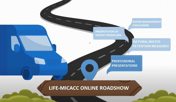 The aim of the online roadshow is to present the achievements of PANNON Pro Innovation Services Ltd. and the partner municipalities in the LIFE-MICACC project, to briefly describe the impact of climate change on municipalities and local farmers, to show alternatives for the use of small-scale natural water retention measures and to promote the application developed for stakeholders.