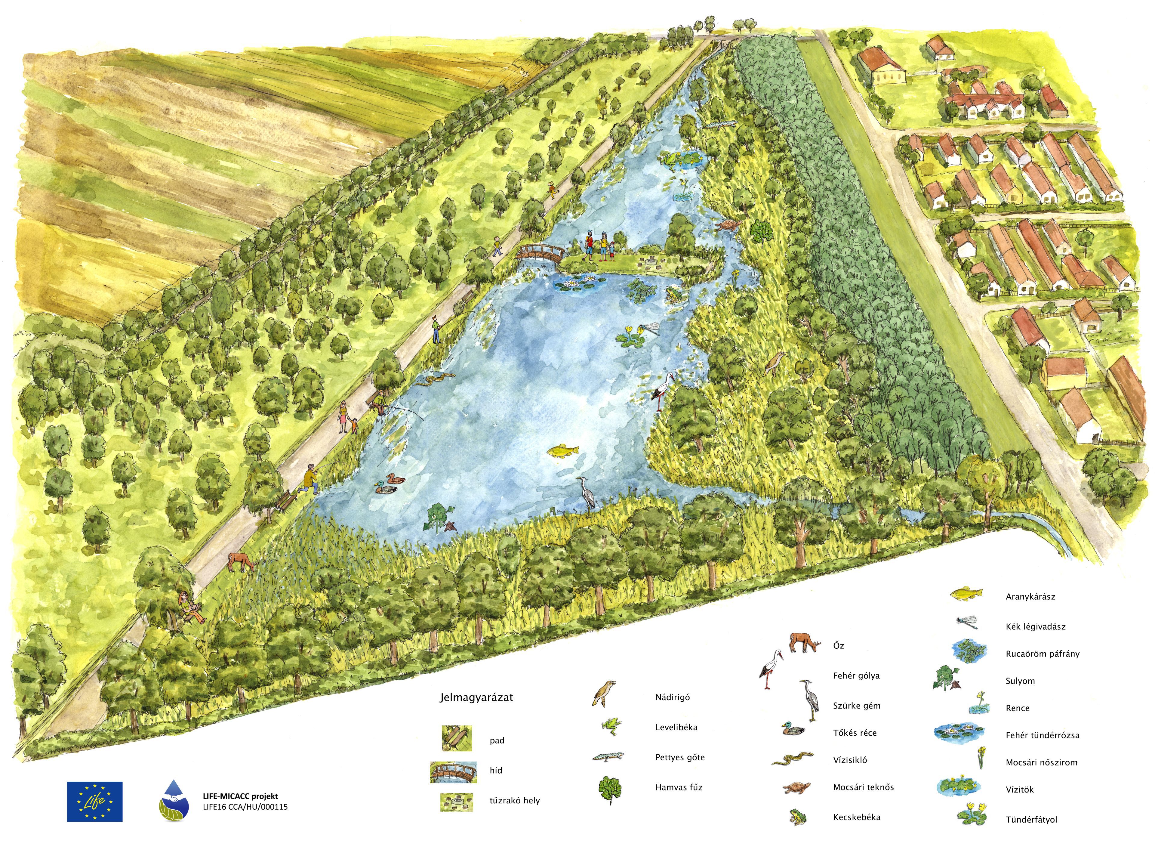 The key purpose of involving local clay-pits into climate change adaptation is to collect and retain rainwater in extreme rainfall events, while ensure the infiltration of the retained rainwater to recharge groundwater in heat wave and drought periods. Besides, this restored and expanded clay-pit will serve as freshwater habitat (for water birds, fish, amphibians) and buffer zone around the settlement, improving the local climate through evaporation. Consequently, it will mitigate the negative impacts on agriculture, residents, infrastructure and buildings.