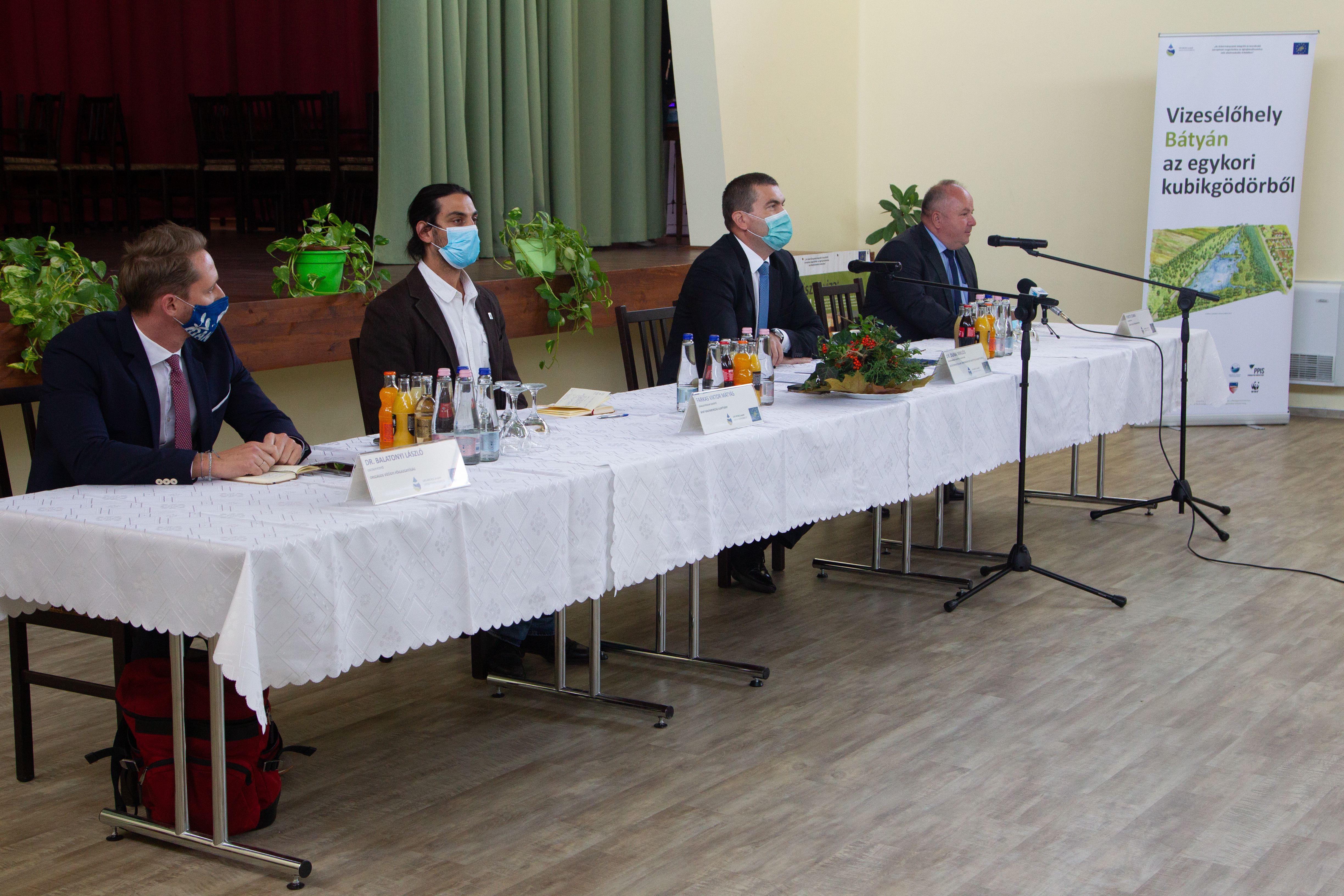 ![]() | A projekt keretében megrendezésre kerülő negyedik terepbejárással egybekötött sajtótájékoztatóra Bátyán került sor 2020. október 8-án. A megjelent média munkatársakat, helyi lakosokat és helyi civil szervezet képviselőit Fekete Csaba polgármester úr köszöntötte elsőként, majd sorban Dr. Dukai Miklós önkormányzati helyettes államtitkár (Belügyminisztérium), Farkas V. Mátyás éghajlatvédelmi szakértő (WWF Magyarország Alapítvány) és Dr. Balatonyi László főosztályvezető úr (Országos Vízügyi Főigazgatóság) beszéde követte. A köszöntő beszédek után a sajtó munkatársak tehették fel kérdéseiket a megjelent projekt partnerekhez, majd ezt követően helyszíni terepbejárással folytatódott a program, ahol a megjelentek közelről is megismerhették a településen megvalósult komplex természetes vízmegtartó megoldás minta projektjét. Bátyán a hirtelen lezúduló csapadék gyakran elöntött néhány utcát és pincét. Azonban a gyors elvezetés helyett az esővíz megőrzése mellett döntött a településvezetés, hiszen az évi csapadékmennyiség Bátyán sem haladja meg az 550 mm-t, ami jóval kevesebb a szükségesnél. A MICACC projekt keretében az összegyűjtött esővizet egy régi, korábban elhanyagolt, illegális hulladéklerakóként használt anyagnyerőhelyre (agyaggödör, kubikgödör) vezették a falu szélén, ezzel egy mintegy 1 hektáros vizesélőhelyet hoztak létre. Az így születő kis tó megőrzi Bátya értékes vízkincsét a szárazabb időkre, beszivárogva visszapótolja a talajvizet, elpárologva pedig javítja a mikroklímát, táplálja a növényzetet és mérsékli a klímaváltozás hatásait. A rendezvény jó hangulatban telt és számos országos, regionális és helyi médium közölt cikket, videót, hanganyagot az eseményről. Bízunk benne, hogy a sajtókirándulás által minél többen megismerik e széleskörű együttműködésben megvalósult minta projektet és Bátya példáját követve egyre több hasonló kisléptékű NWRM megoldás születik hazánkban. A sajtókirándulásról készült további képeket a Galériában találnak. |
