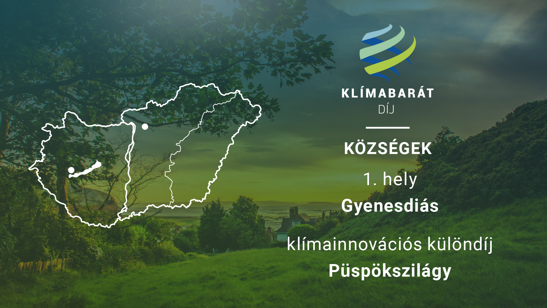 Községek kategóriában I. helyezést ért el Gyenesdiás Nagyközség Önkormányzata, míg a Bírálóbizottság „klímainnovációs” különdíjban részesítette Püspökszilágy Község Önkormányzatát.