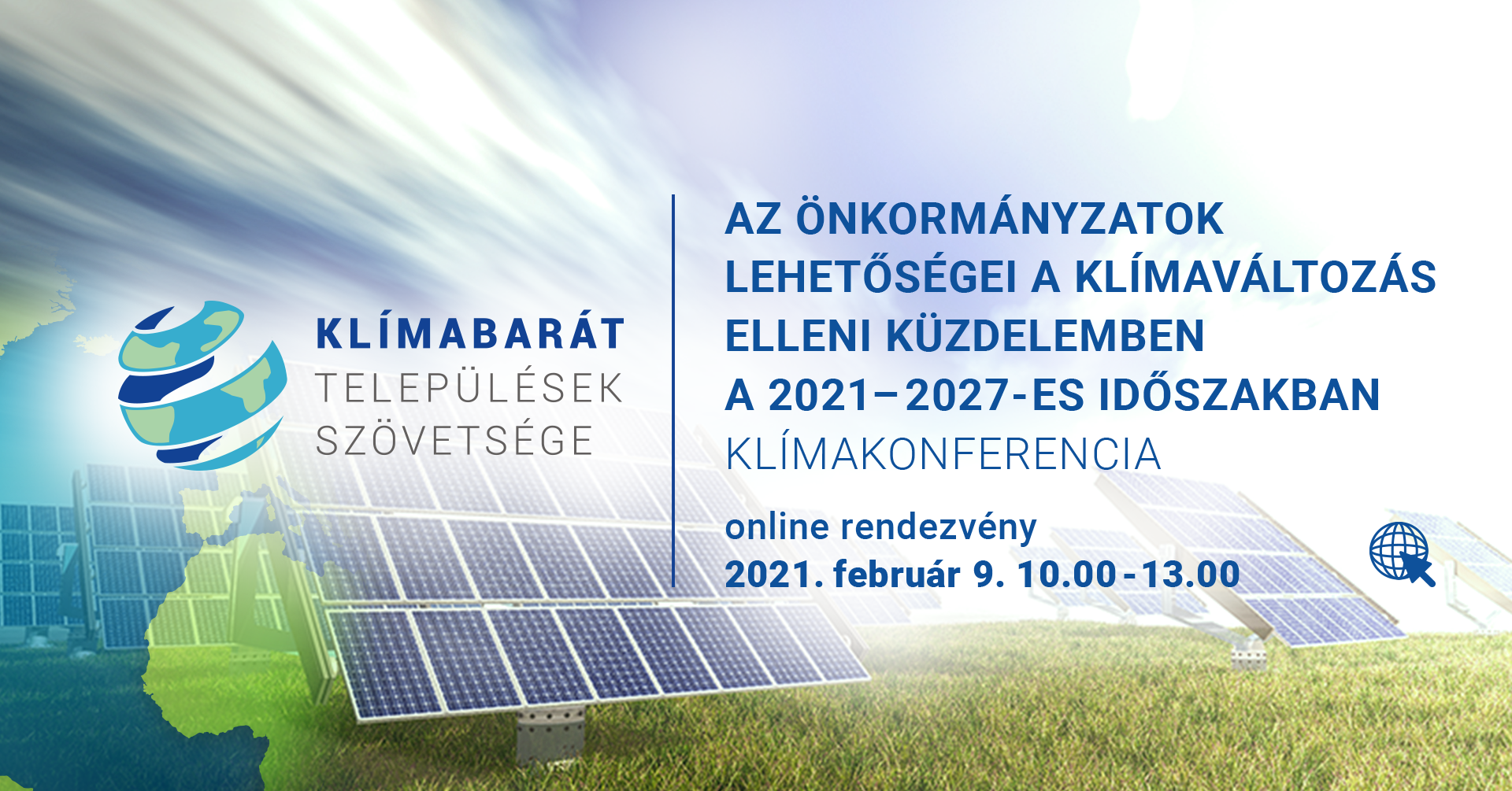 A LIFE-MICACC projekt keretében 2021. február 9-én került megrendezésre „Az önkormányzatok lehetőségei a klímaváltozás elleni küzdelemben a 2021 – 2027-es időszakban” című klímakonferencia. A rendezvény a Klímabarát Települések Szövetsége és a Belügyminisztérium Önkormányzati Koordinációs Iroda szervezésében, valamint a Megyei Jogú Városok Szövetsége, a Megyei Önkormányzatok Országos Szövetsége és a Települési Önkormányzatok Országos Szövetsége támogatásával valósult meg. A konferencia a COVID-19 pandémiás helyzet következtében bevezetett járványügyi intézkedésekkel összhangban online formában került megtartásra. A partner önkormányzati szövetségek támogatását ezúton is hálásan köszönjük.