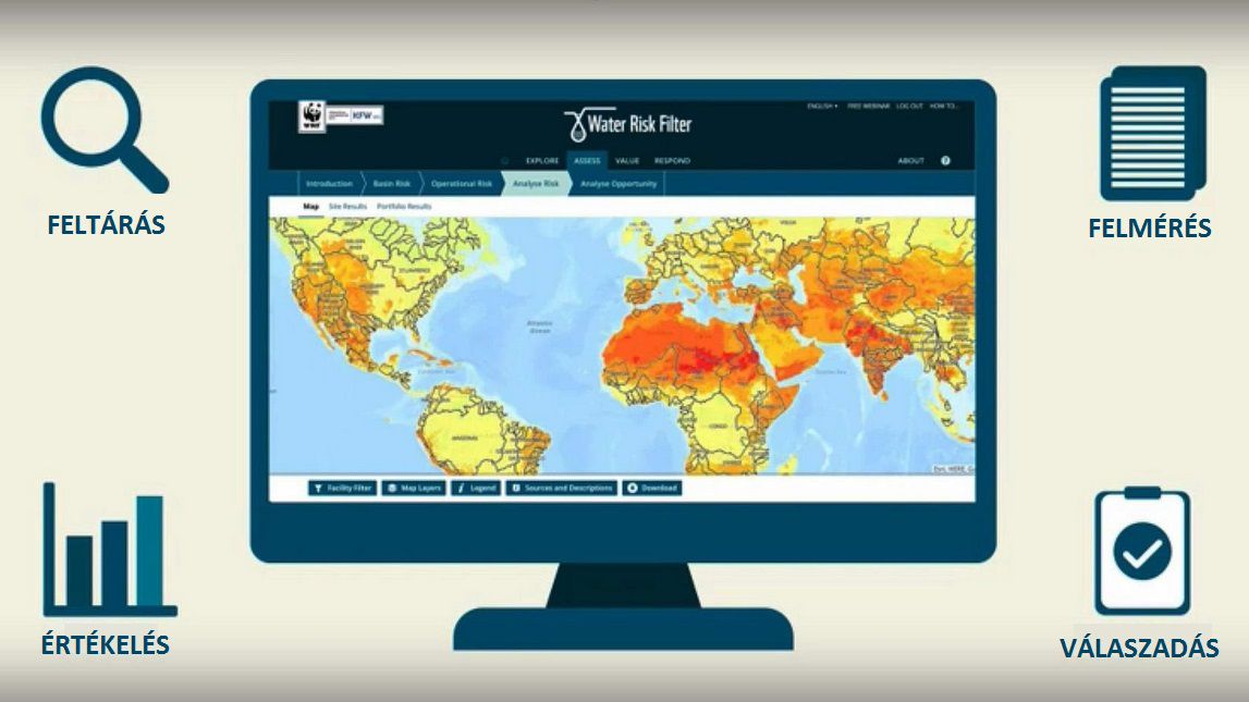 A WWF Magyarország Alapítvány által 2012. óta működtetett Vízkockázat Kalkulátor (Water Risk Filter) egy gyakorlatias online eszköz (https://waterriskfilter.panda.org/), amely a helyi önkormányzatoknak, vállalatoknak és különböző vízhasználóknak kíván segítséget nyújtani, hogy egyszerűen felmérhessék és értékelhessék, hogy hol milyen vízzel kapcsolatos kockázatokkal kell számolniuk.