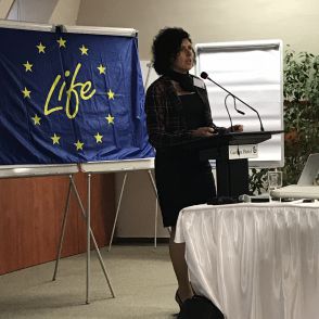 Sánta Gizella (polgármester asszony) bemutatja a Ruzsán megvalósuló pilot projektet.